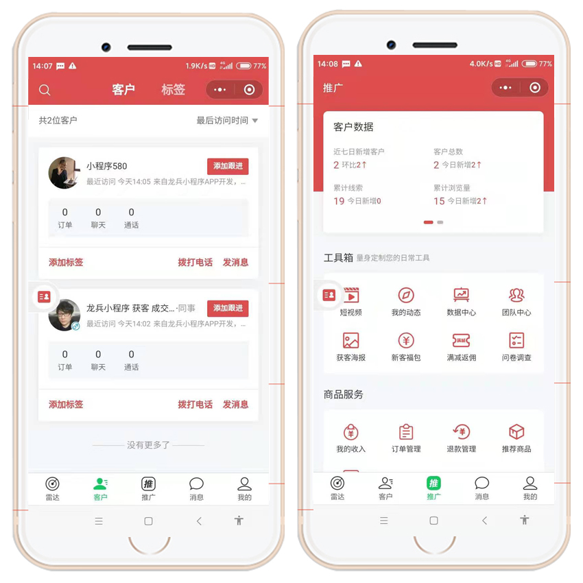 龙兵科技,自主研发,源码交付,欢迎交流:guocingertong对于大型的装修公司而言,比如说咱们有施工人员,有设计师,有销售,甚至有门店,有文员,员工多达数百个。这种大型装修公司,如何去开展属于自己公司的全员营销?全员营销的好处显而易见,他可以降低广告费,去利用目前的人力资源,进行周边的精准客户挖掘,这样不但可以减少广告费啊,还可以提升成交量。那装修公司,你们有没有想过,为什么你们的员工愿意去做全员营销?怎么做全员营销?还有如何把全员营销做的有效果,有结果?首先,要理解为什么原来做不好全员营销。原来的装修公司做全员营销的方式简单粗暴:大家可以去找客户,客户签单以后就可以领取佣金。那么,对于一些相对有专业知识的装修从业人员,比如设计师销售而言相对简单一些,因为他们掌握专业的知识。但是,对于公司的其他人员,例如工长,施工人员,保洁、行政人员,他们对整个装修基本上不会太了解,但是呢,他们又想赚取费用,这怎么办呢?首先要给他们做赋能,就是给他一个可以去触达客户,可以去挖掘意向客户的工具,让他们通过自己的朋友圈,自己的人际关系去挖掘。比如,可以转一篇极具营销性的软文,可以转发一个装修活动的短视频,再比如去转发优秀的案例和促销活动。他们虽然没有掌握专业的装修知识,但是他们需要做的只是转发,转发不断的转发而已。这样就会获得有意向的客户。当获得意向客户后,他们并不用成交,他们只需要把意向客户交给具备成交的人成交而已。那么他们依然能获得佣金。很多传统的装修公司,也在用老的方法去这么做!普通的人只需要提供线索就可以了,然后根据成交进行奖励。其实这种方式也是有问题的,因为成交是具备一定的概率因素的。获得线索的人,提供了线索一定能成交,如果长时间不能成交,那么对他们而言就是一种负担的工作。所以只要通过工具做了转介绍,挖掘了潜在客资!就要给予奖励。比如说,公司设定线索奖励,只要你转发信息获得了50个有效的电话,那么就可以奖励你500块钱或1000块钱,无论这些意向客户是否成交。这种方法,针对基层的不懂业务的也不太期望通过成交获得佣金的员工,只需要执行,就可以赚取这方面的佣金。那么,随着获取的线索越多,他们获得的线索佣金越多,而且这些提供的线索是一定可以有成交客户的,一旦有成交客户,他们获得了大笔的奖励,他们的信心就会更加足够。这样就是一个良性的循环,越努力获得的报酬越多,获得的报酬越多,越努力,这样呢,就可以激励基层的员工。全部去做拓客,全部去做引流,这样就实现了一个装修公司基础的全员营销。如果你也愿意通过这样的一个装修获客小程序去做全员营销,那么可以私信我们,跟我们详细沟通。