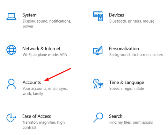 1、首先按键盘上的Windows + I按钮进入设置,点击“accounts”。