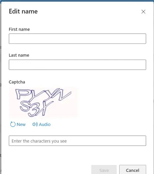 7、此时需要编辑您的姓名,输入所需的验证码,再点击“save”即可。