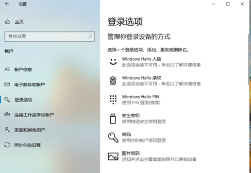 3、此时我们可以看到右边的登录选项,这里可以对我们的电脑进行登录密码设置。