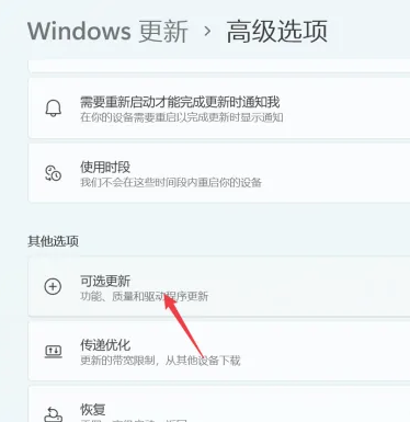 4、进入高级选项“可选更新”。