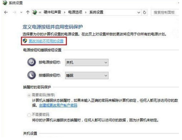 4.然后单击界面顶部的“更改当前不可用的设置”以进入下一步。