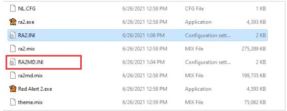 2、打开游戏的安装目录,打开“RA2MD.INI”配置文件;