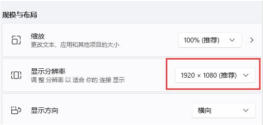3、在规模与布局中我们可以查看到我们的“显示分辨率”。