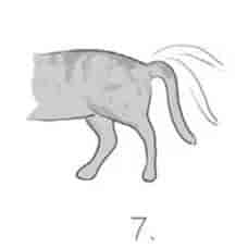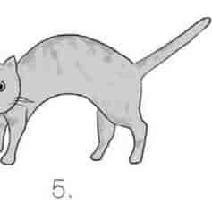 背部弓起、尾巴上扬,表示准备进攻,这时候属于猫咪的暴怒状态,最好躲远些,不要去惹它。