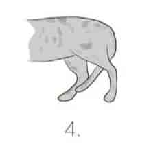 尾巴夹在腿部中间,表示驯服,此时猫咪处于比较紧张和担忧的状态。