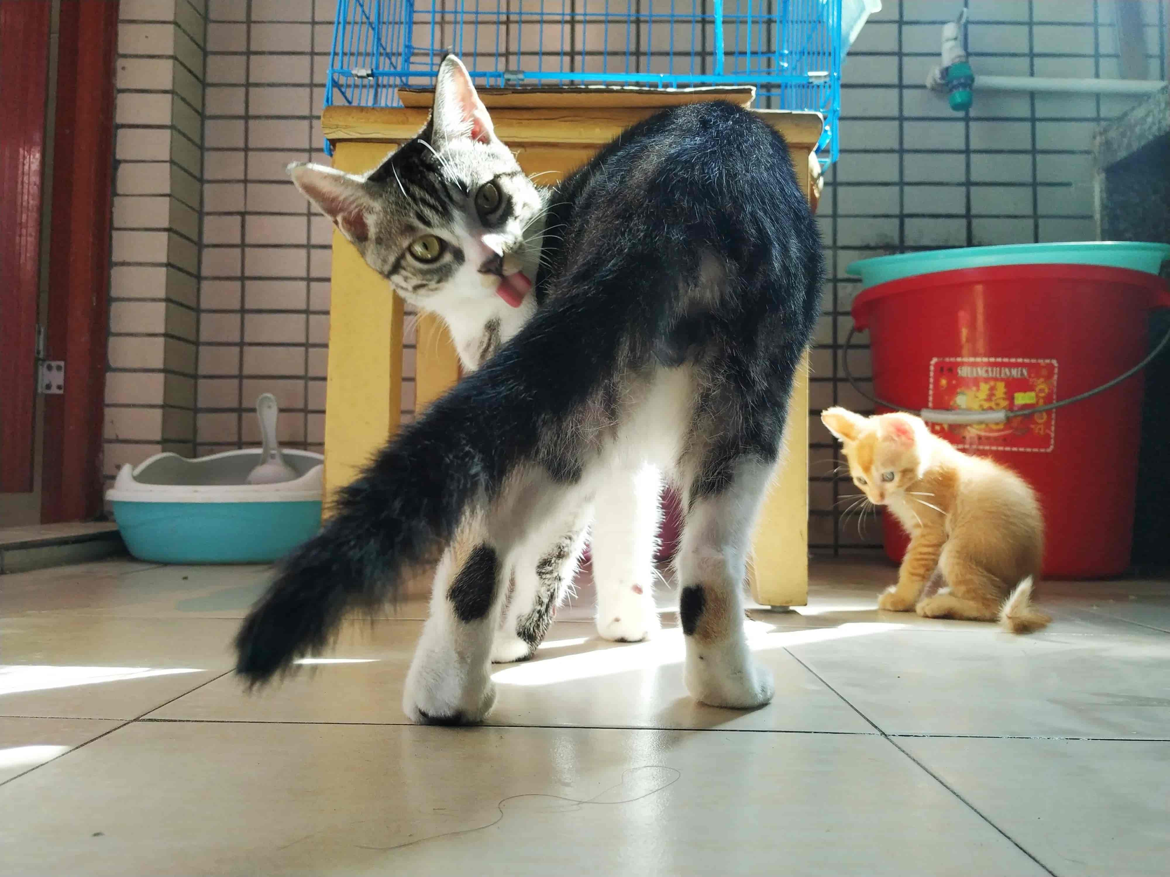 猫咪的尾巴直直地竖起,表示友善。这时候它心情很好非常愿意和你接触。
