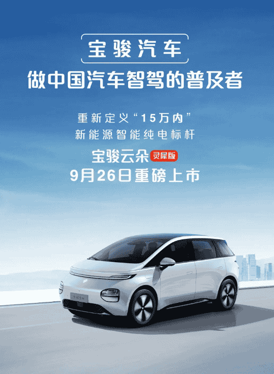 【本站】9月12日消息,近日,宝骏汽车宣布其最新车型宝骏云朵灵犀版将于9月26日正式上市,这一消息引发了广泛关注。据了解,宝骏云朵灵犀版将成为15万元以下市场中的一匹黑马,将高级智能驾驶技术带入了更广泛的消费者群体。