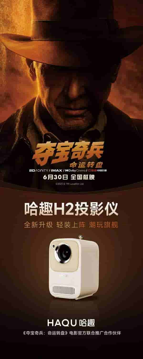 好莱坞经典系列IP《夺宝奇兵5:命运罗盘》正在全国影院热映中,老炮哈里森·福特,与新老搭档一起,直面命运终章。哈趣投影作为国内千元投影增速第1头部品牌,携旗下轻装旗舰画质高清智能哈趣H2,联合《夺宝奇兵5:命运罗盘》电影官方,与全国观众一同感受大屏电影的震撼与刺激,大屏双向奔赴。