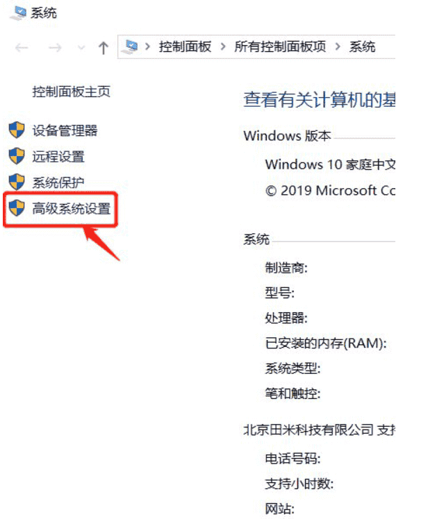 3、弹出系统面板后找到高级系统设置,点击。