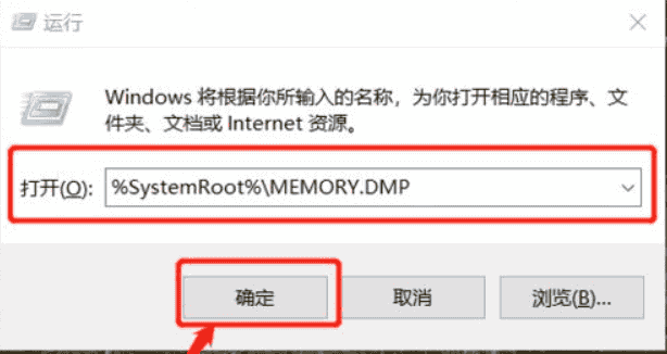 6、按下【WIn+R】组合键弹出运行,粘贴刚才复制的代码,点击确定即可打开蓝屏信息存储文件夹了,这时后就能弹出蓝屏的记录文件了。