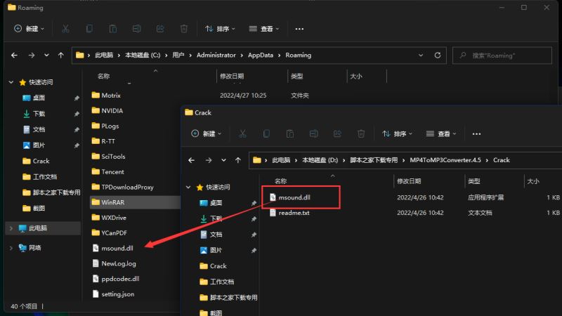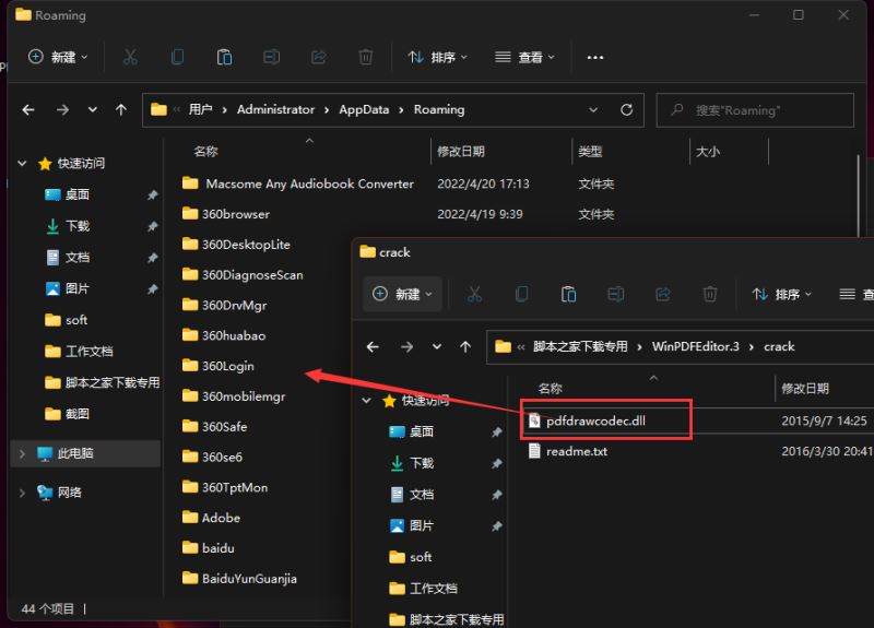 7.打开crack文件夹,将里面的.dll文件复制到C:\Users\USERNAME\AppData\Roaming目录中(注意:怎么找到C:\Users\USERNAME\AppData\Roaming路径呢?下面有有详细的教程!)