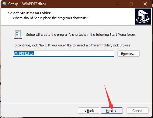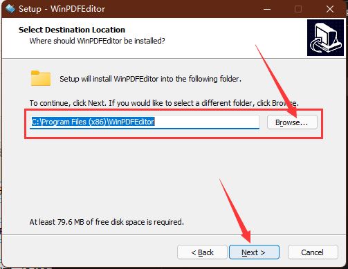 2.点击browse更换软件安装目录,默认目录:C:\Program Files (x86)\WinPDFEditor;如图