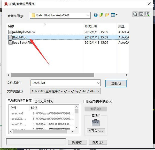 2、安装完成后,打开CAD,在命令栏键入bplot。如按了没有反应,则要在工具下拉菜单中加载应用程序中加载;