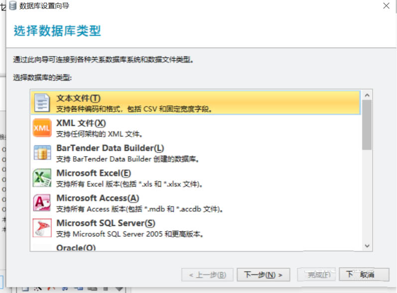 7、选择所需要的数据库,本例中,选择"文本文件",如图7