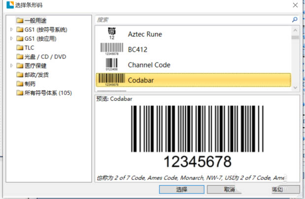 4、完成后,为标签放置条形码。点击"创建"—"条形码"根据所需类型,选择条形码样式。如图4