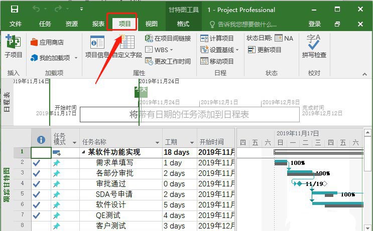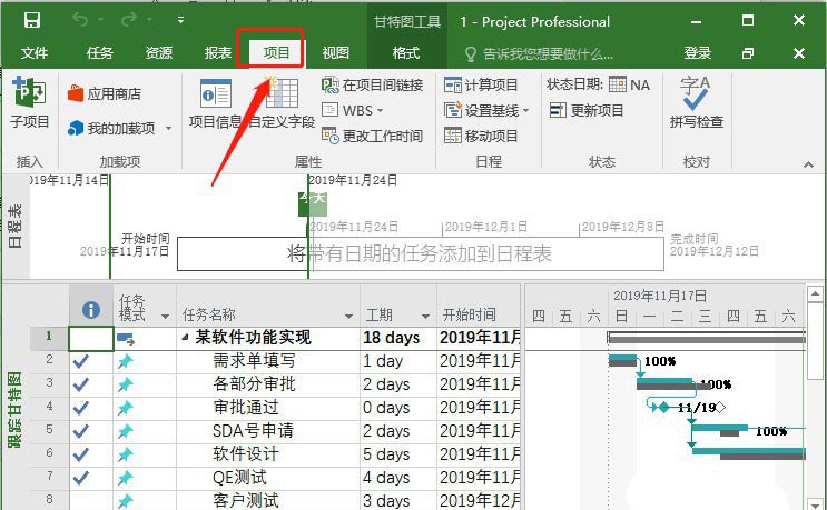 2、点击菜单栏上的【项目】,如图所示