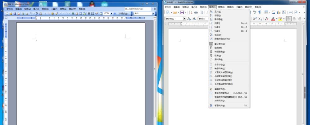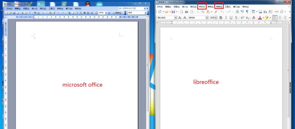 1、libreoffice相对于mcrosoft office菜单的异同,libreoffice多出了“样式"和”表单“两个选项