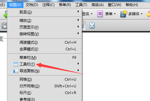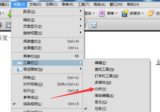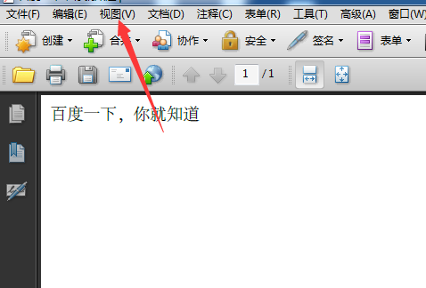 1、首先,打开一个的Adobe Acrobat的,进入到了该界面当中,点击Adobe Acrobat的菜单中视图菜单。
