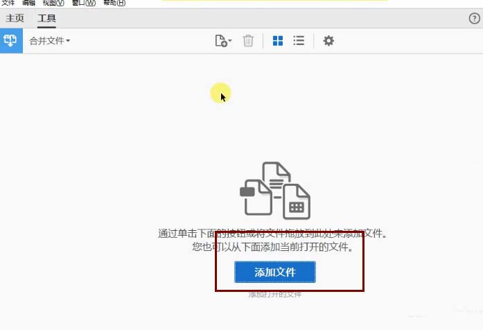 5、接下来会进入到一个合并文件的界面中,我们点击添加文件按钮,如下图所示
