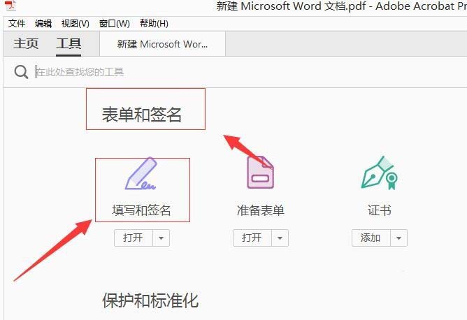 3、进入到工具界面,找到“表单和签名”列选择“填写和签名”选项。如图: