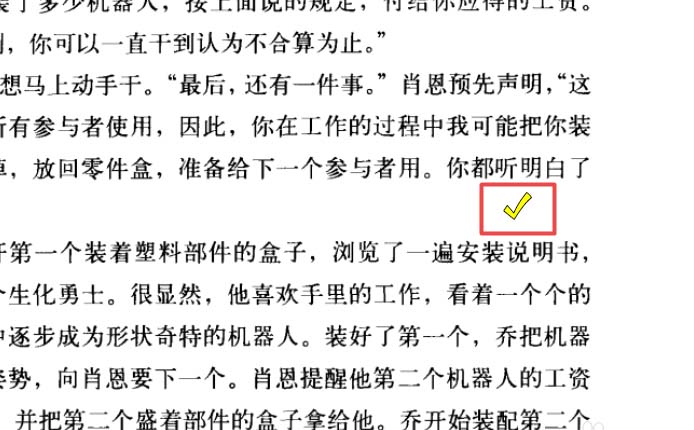 9、结果如图所示,这样就变成钩形标注了,之后我们点击保存就可以了,后续我们再看这本书的时候的时候,我们在看到这个标注的时候也就知道这个地方我们已读了。