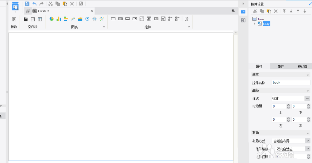 2、在控件栏处找到滚动字幕控件,拖动到决策报表编辑区域,可以发现这个控件放在了body下面,如下图所示: