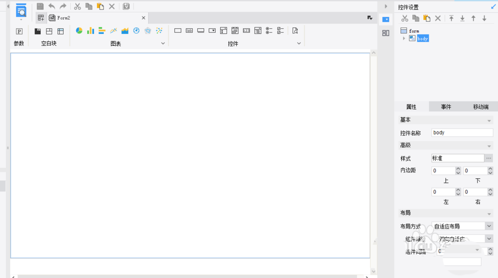 1、双击打开FineReport报表设计器,新建一个决策报表,然后将参数栏拖到空白编辑区域,如下图所示: