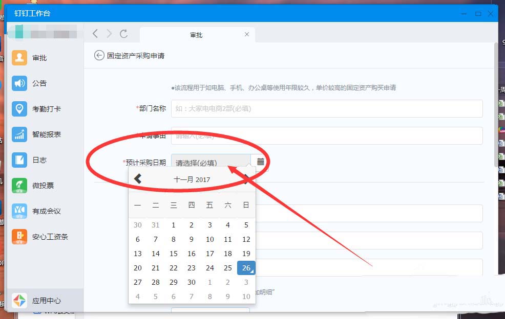 第四步:预计采购日期。“预计采购日期”即希望采购回来使用的日期,协调控制各部门的工作衔接和要求,在一定程度上提高效率;如下图: