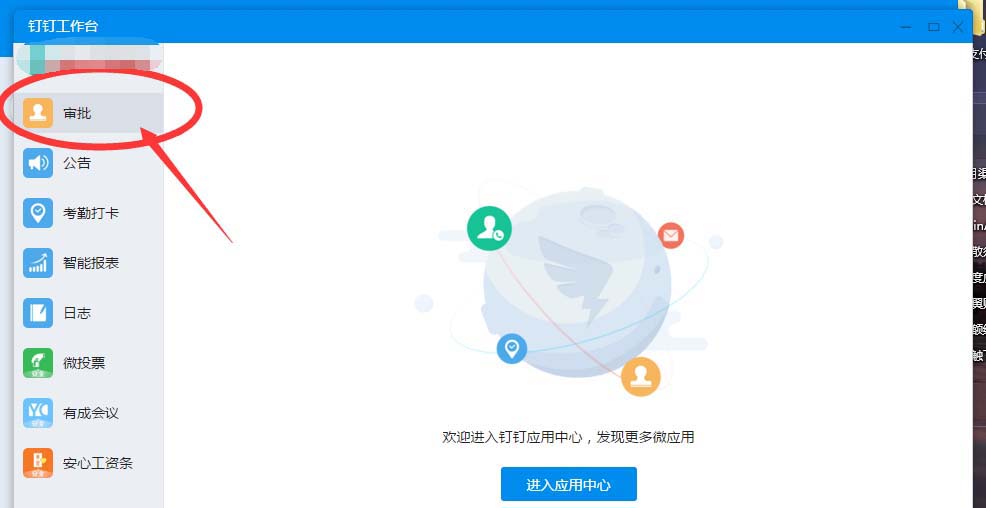 3、点击“工作”台之后,弹出工作台——点击“审批”,如下图: