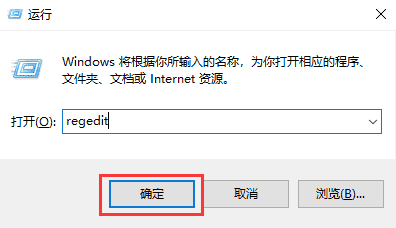 2、然后输入命令“regedit”回车确认。