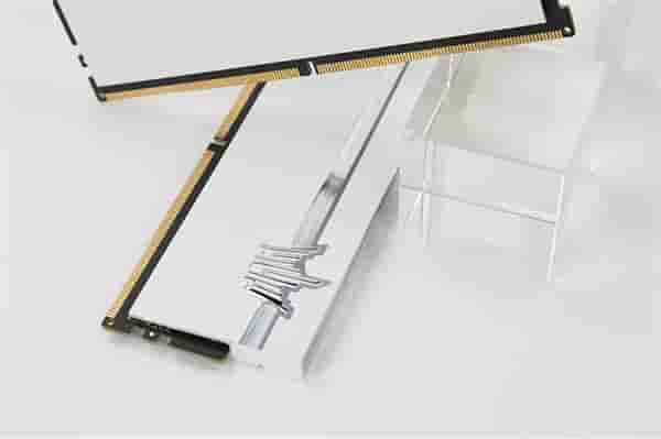 内存顶部是内嵌式灯条,并使用金属亮眼抛光处理,增强顶部聚光的同时,还可以表现HOF LOGO的悬浮效果。