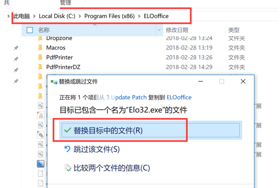 12、将升级文件夹Update Patch内的Elo32.exe复制到安装目录"C:\Program Files (x86)\ELOoffice\"并替换