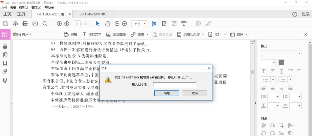 4、但是面对加密的文档,会提示需要“输入口令”,这个时候需要使用软件PDFPasswordRmover,移除PDF的密码,就可以按照上面的方法愉快的OCR识别了。有时也会出现,点了“编辑图像”,但是未能进行OCR识别,只是把当页识别成一整张图片,我也用PDFPasswordRmover处理了一下,然后再进行OCR识别,就没问题了。