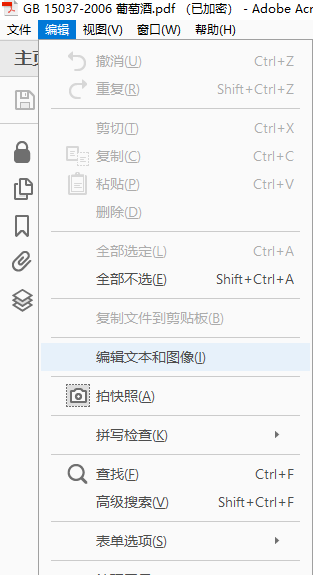 1、打开要识别的PDF,如果该PDF没有加密,那么点击“编辑-编辑文本和图像”或者在任意页面鼠标右击,选择“编辑图像”,就可以进行OCR识别了。