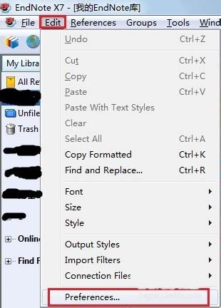 1、Endnote软件在查重复文献之前,我们需要先设置判定参考文献是否重复的标准。打开Endnote软件,依次点击edit,选择其下的preferences