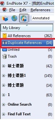 7、如果你只是需要找出那些重复的参考文献,直接点击的红色的叉叉关掉对话框,此时你会发现Endnote中会多了一个分组Duplicate reference,这个分组中便会列出重复的文献