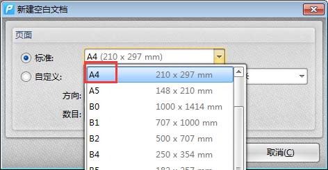 3、对于试卷样板我们选择A4的页面大小来进行创建。然后点击确定按钮就可以创建完成了。