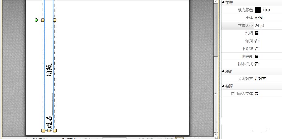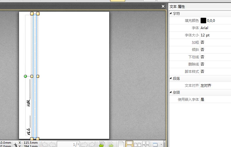 6、在添加的文本框上,我们来对方向旋转90度,然后在移动到左侧边缘的位置,如图所示。