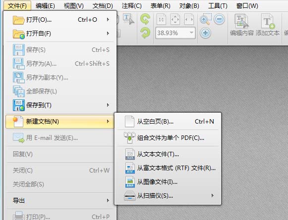 2、如何我们在PDF编辑器中创建空白文档,在开始菜单下可以找到相应的空白页面创建选项。