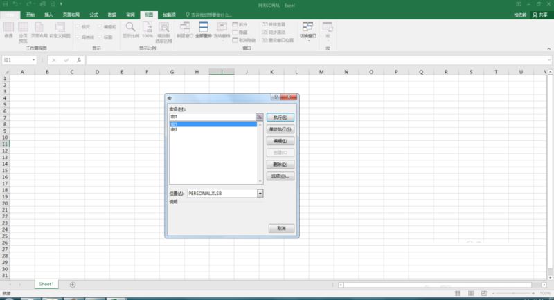 2、将PERSONAL工作簿取消隐藏,这时就会出现一个PERSONAL命名的文件。打开宏,发现里面存有我们保存的宏指令,将不需要的宏进行删除操作