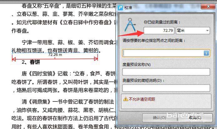 5、如果有偏差,可以用距离工具进行重新测量(小编这里是以文字为例,所以难免有偏差)