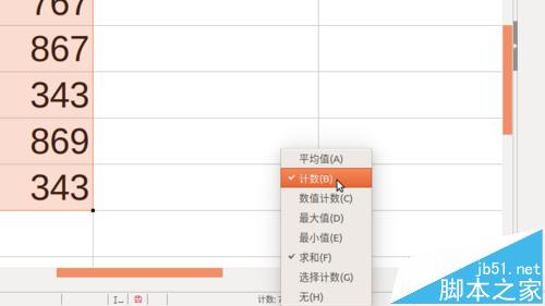 6、如图,在LibreOffice Calc 状态栏中关闭了“平均值”的计算,打开了“计数”的计算。