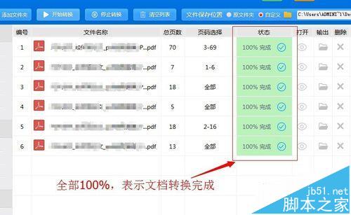 5、最后设置好文档的输出位置,点开始转换等待文档合并完成。