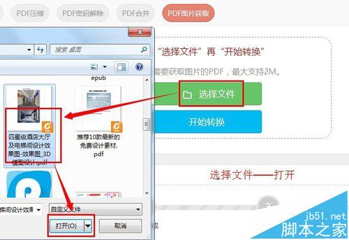 3、按钮选择对了之后,就可以进行文件上传的操作了。单击“选择文件”——选中需要获取图片的PDF——单击“打开”按钮。