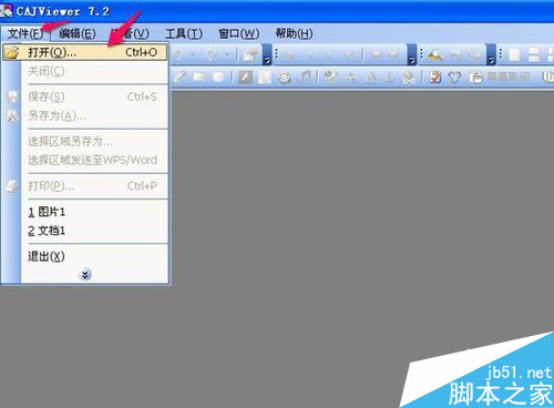 4.然后打开cai进入,在左上角选择文件“打开”,找到刚刚保存的PDF文件打开。
