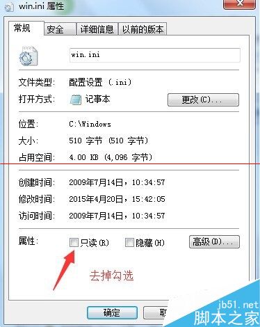 若要将 Win.ini 文件的属性,请按照下列步骤操作:1.找到您的计算机上的 Windows 目录。 2.在 Windows 目录中找到 Win.ini 文件,然后用鼠标右键单击该文件。在出现的菜单中单击 属性。 3.在 属性 对话框中的在 属性 部分中请确保在 只读 复选框未选中。如果选中该复选框,则单击以清除它,复选框,然后单击 确定。 4.请再次运行安装程序。