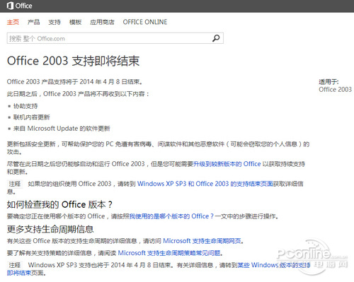 在微软不厌其烦的提醒下,相信大家都已经知道,Windows XP的支持将于2014年4月8日结束。在此提醒广大用户,与XP一起,Office 2003的产品支持也将于4月8日结束。4月8日之后,Office 2003不再收到微软提供的协助支持、联机内容更新、来自Microsoft Update的软件更新、安全更新。不过,4月8日之后,你仍然能够启动和运行Office 2003,但是想要获得持续支持和更新就需要升级到较新版本的Office了。