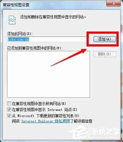 3、添加成功,点击关闭,网页将自动进入兼容模式!