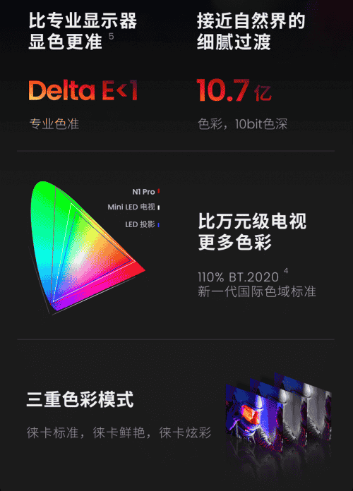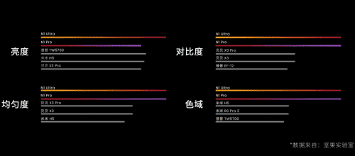 除了以上这些显性参数外,坚果N1 Pro和N1 Ultra在不易被感知的参数上同样下了功夫,例如色准、亮度均匀性、色深等。
